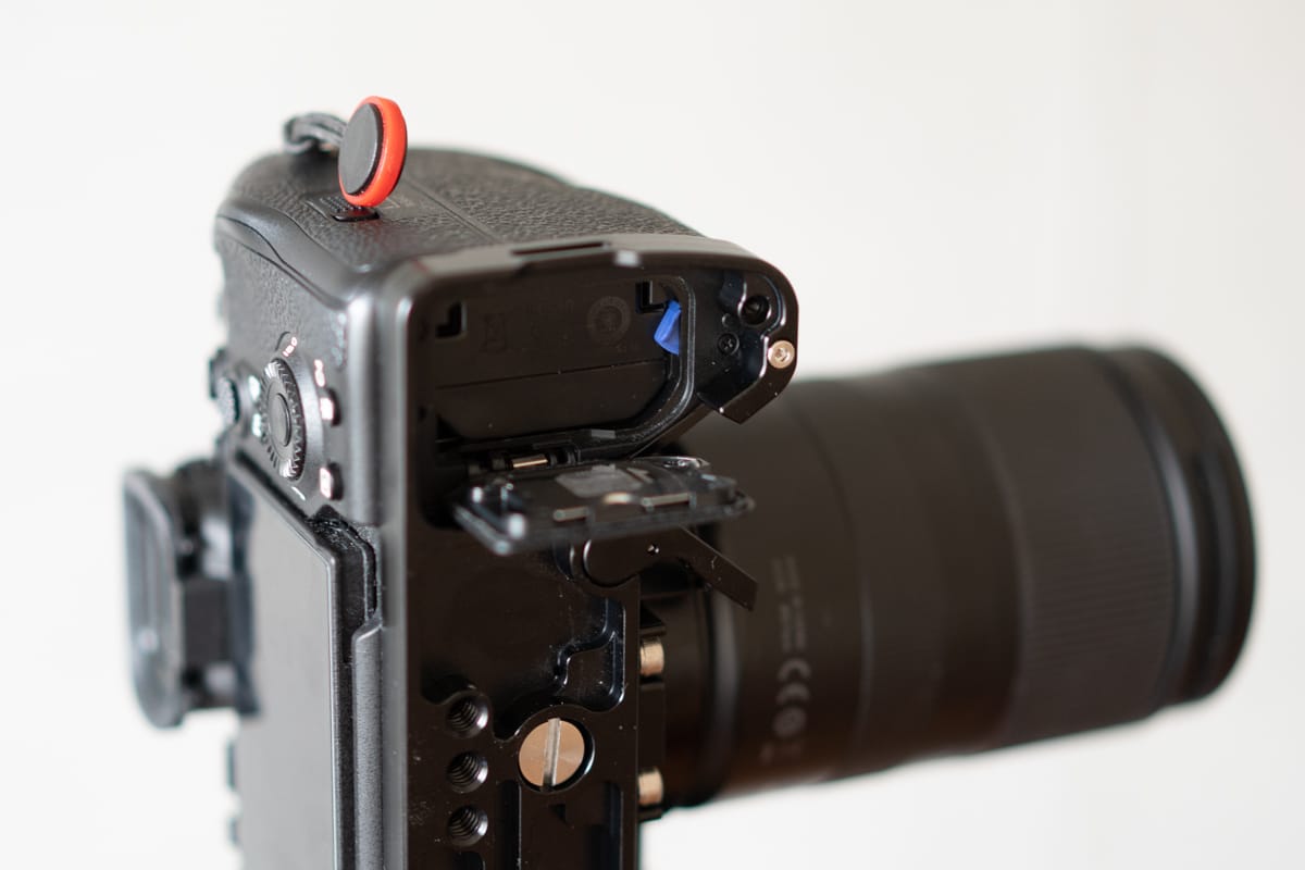 最初に本製品を装着してカメラを色々いじっていたときに「あれ?ベースプレートつけるとバッテリーキャップと干渉して開けられないぞ??」となりました。
