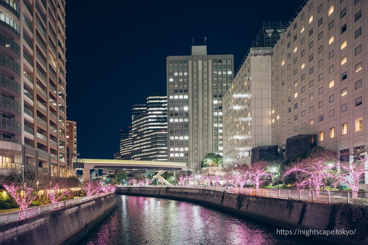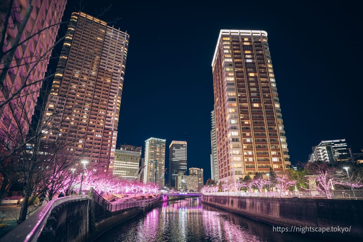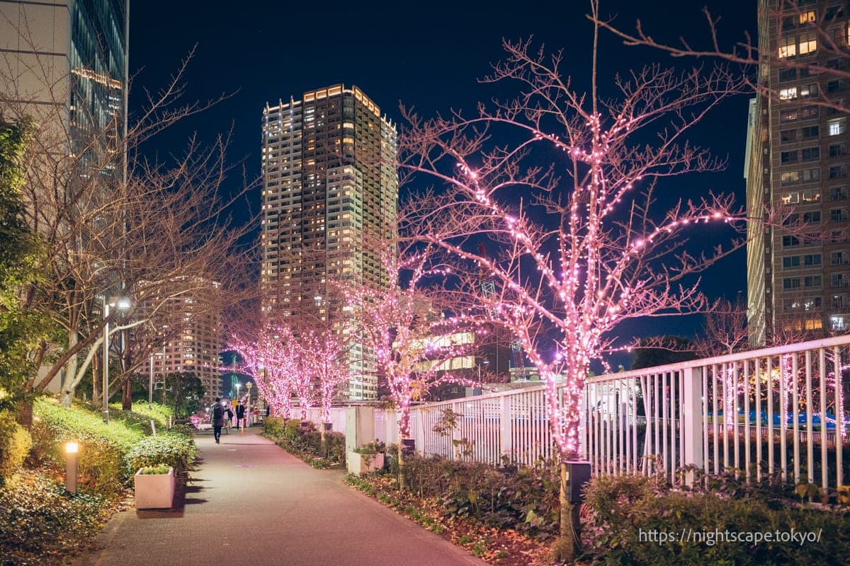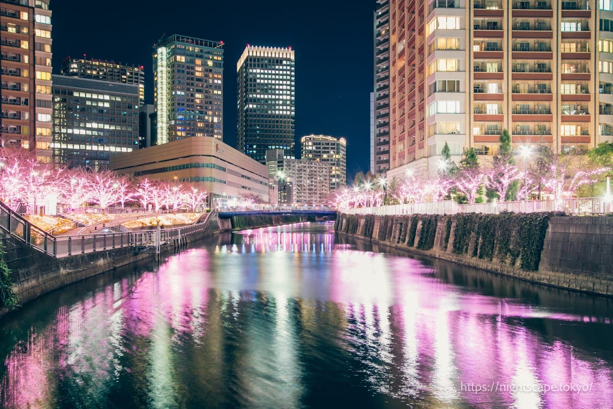 - 可以欣赏到目黑川樱花大道被粉红色灯光美丽照亮的景象。