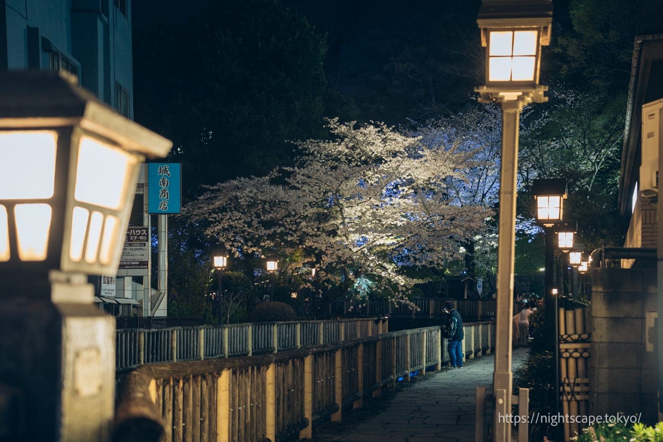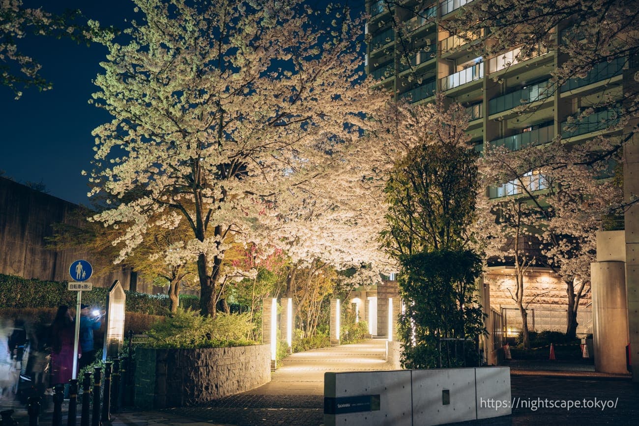 春季灯光秀期间,樱花被柔和的灯光包围,倒映在水面的光影营造出梦幻般的氛围。在这静谧闲适的空间里,可以慢慢欣赏夜樱的魅力。