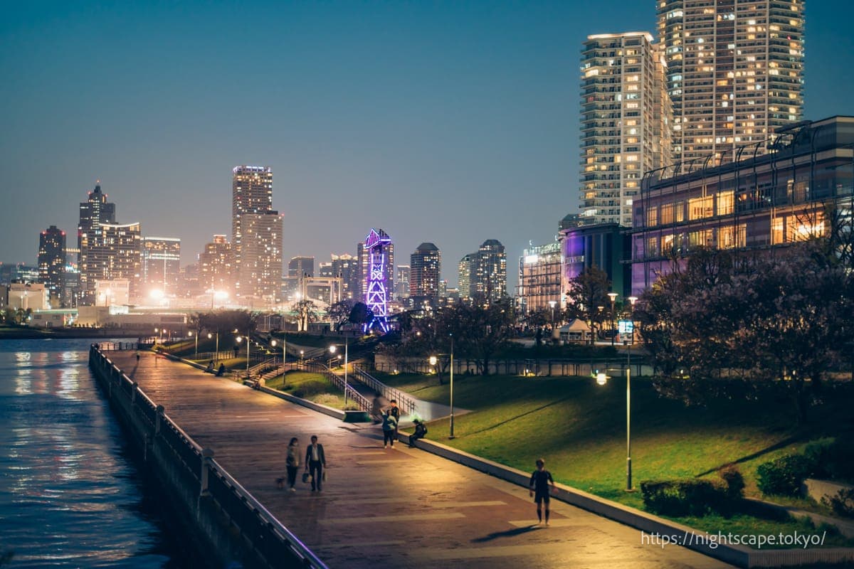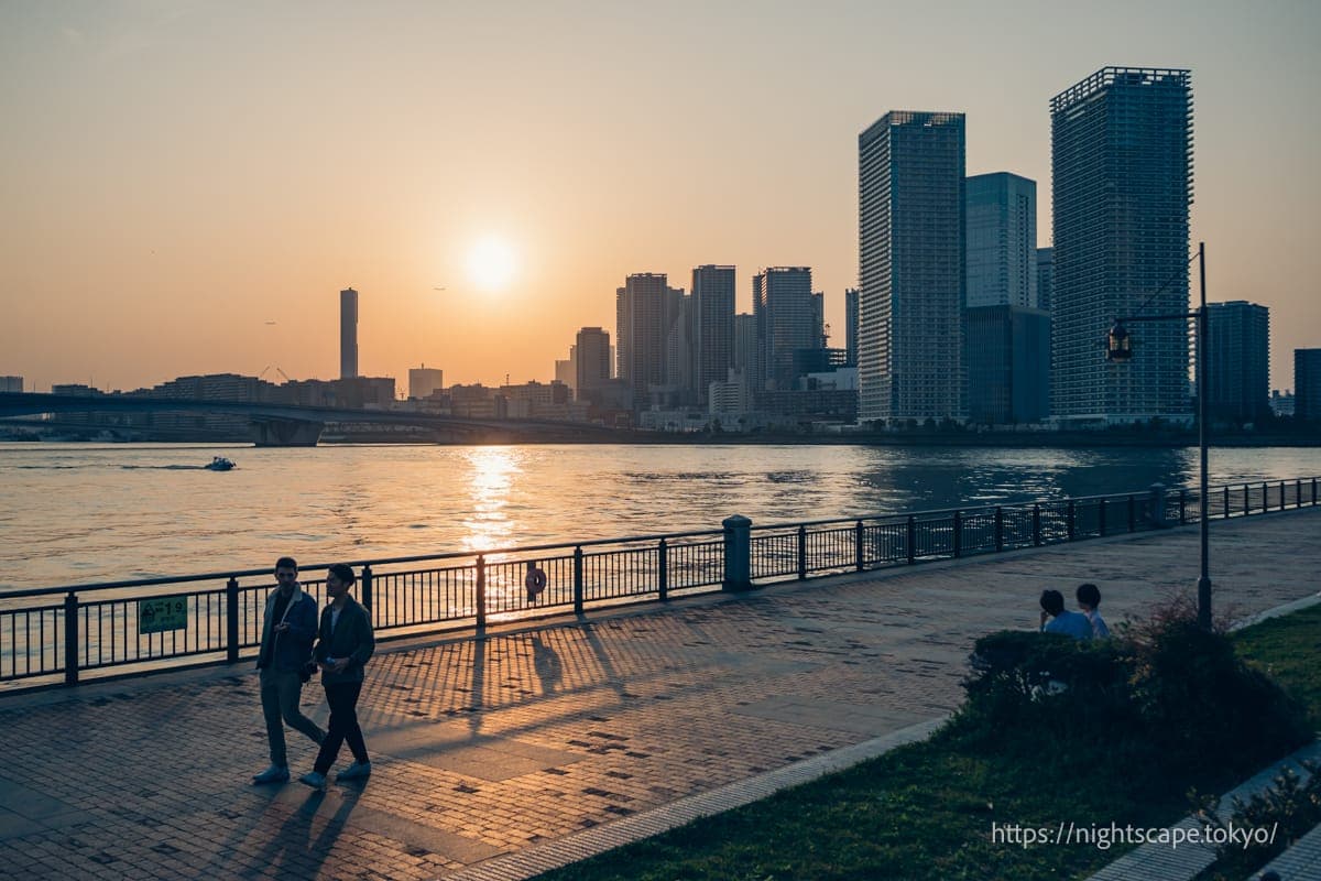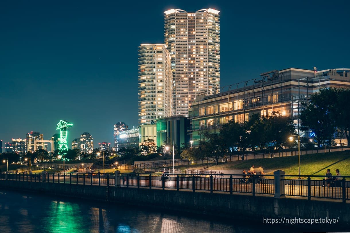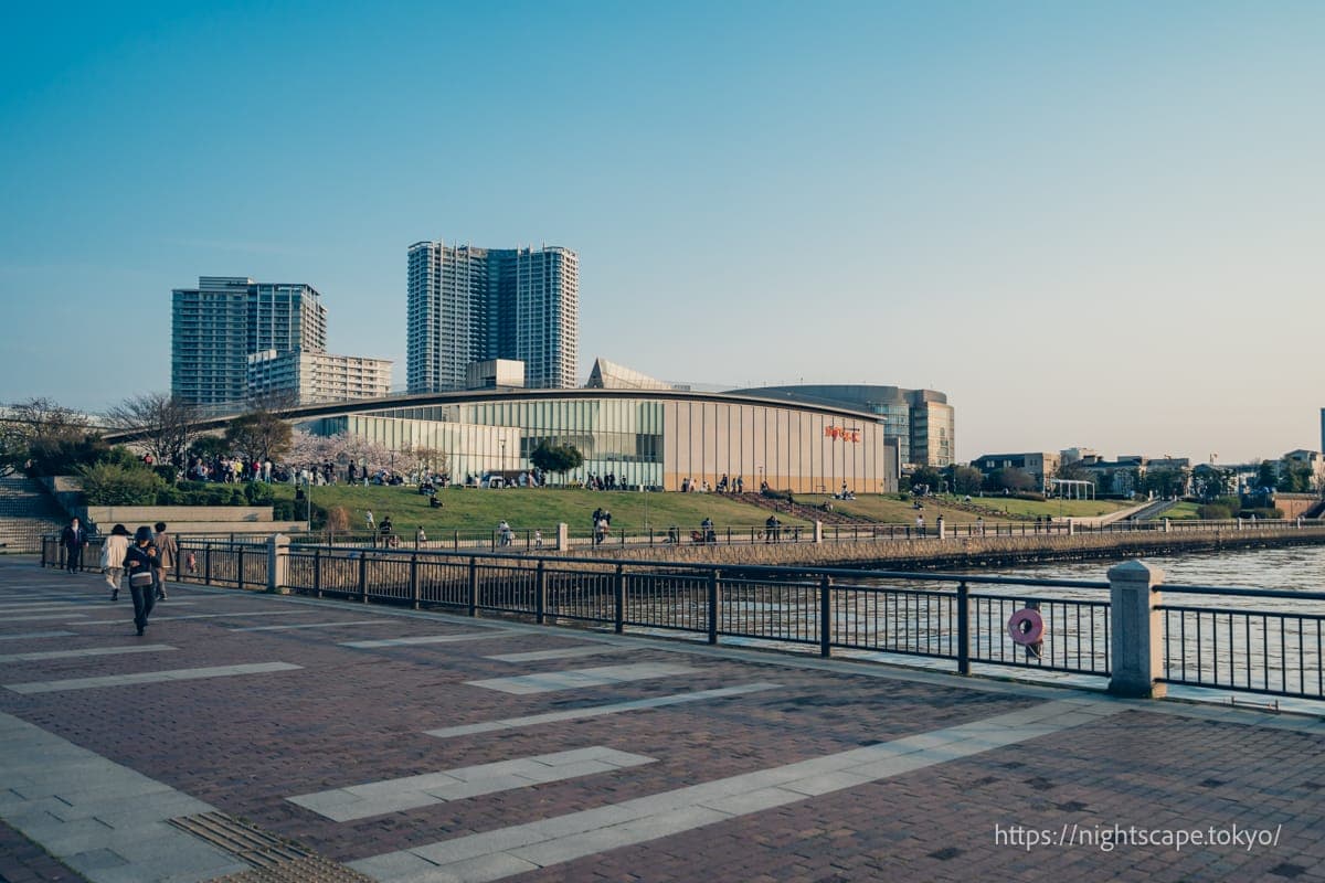 从这个精心整备的公园里,可以欣赏到震撼人心的晴海地区高层公寓群和晴海大桥的景色。