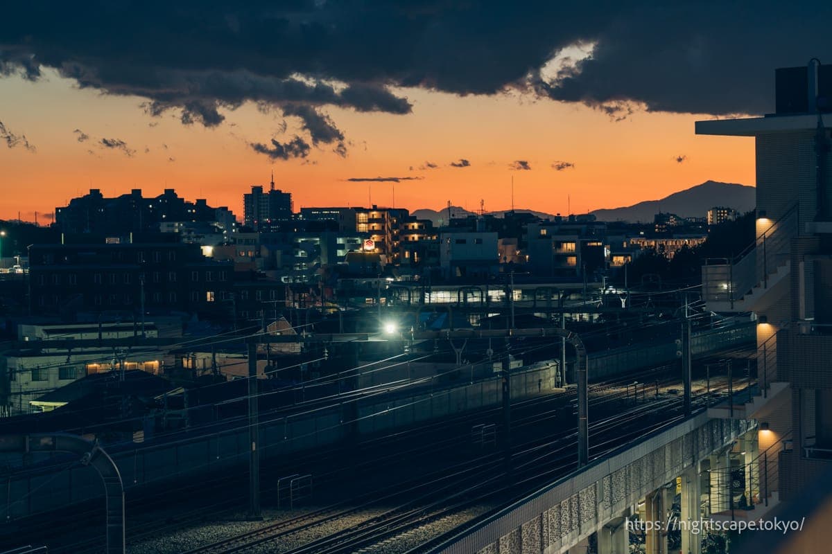 铁路远处可见富士山的景观① 铁路远处可见富士山的景观② 涩谷高层建筑群与东京铁塔 经堂站周边夜景① 经堂站周边夜景②