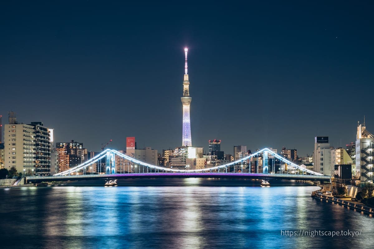 这是可以隔着荒川欣赏灯光照明的东京晴空塔的夜景景点。