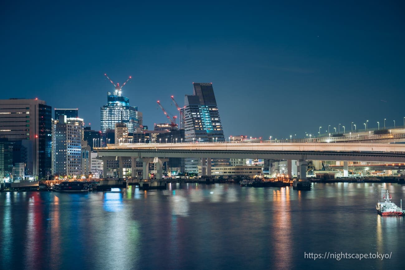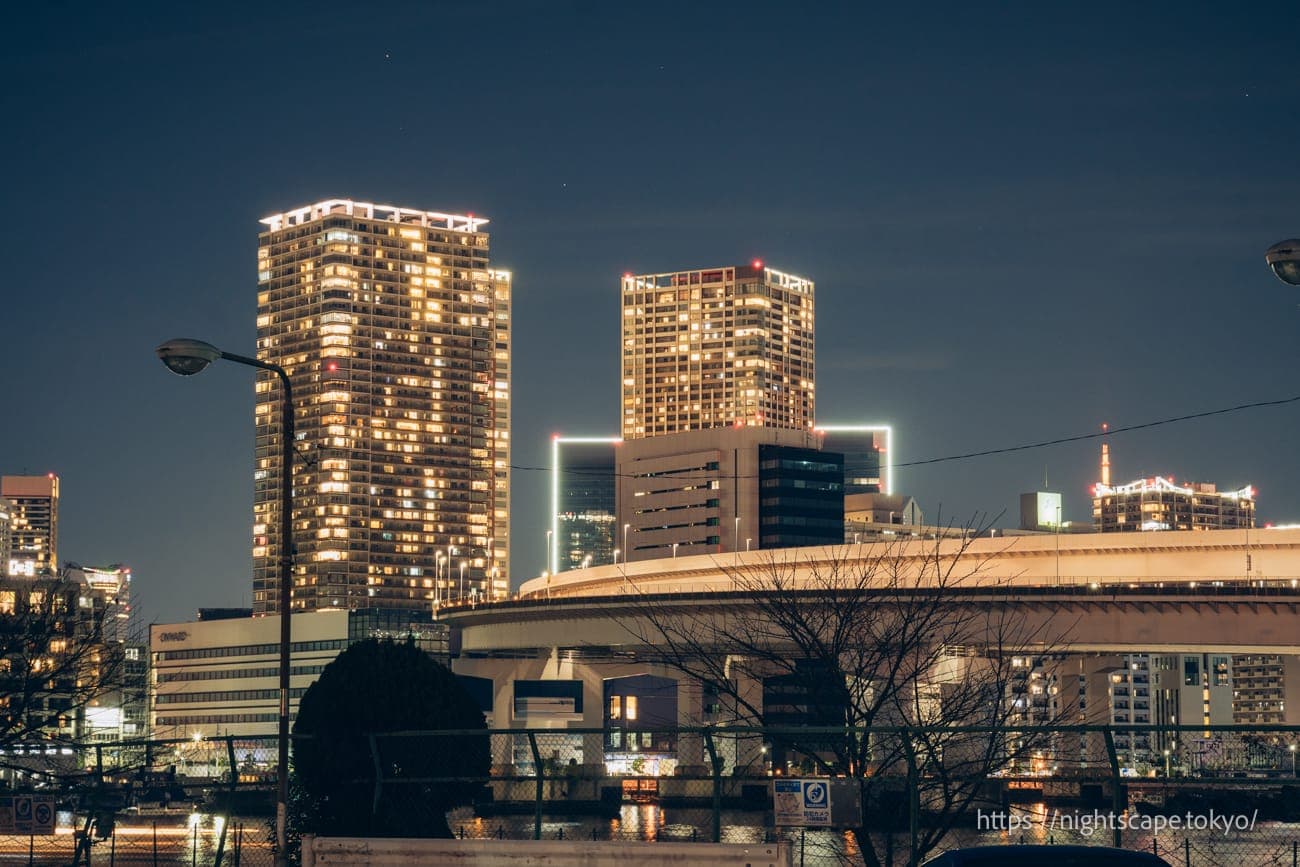 这是可以欣赏到灯光照明下震撼人心的东京门户大桥的夜景景点。