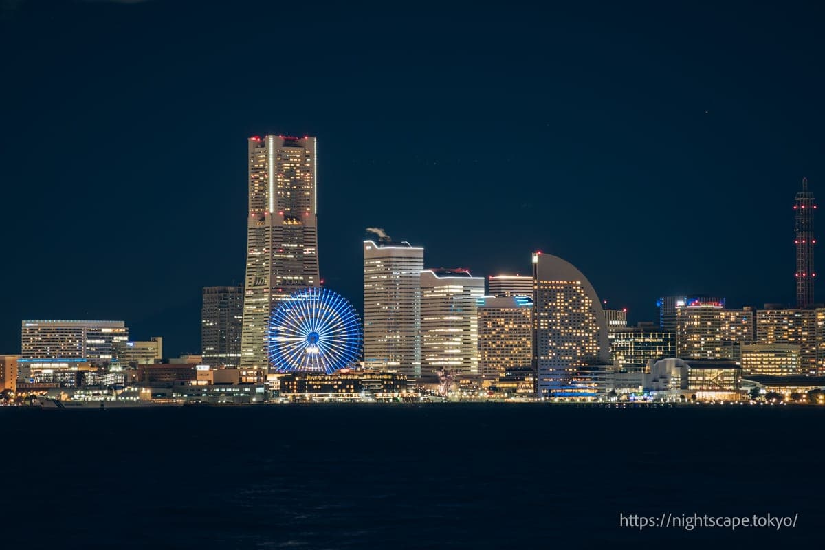 对岸可以看到港未来地区的街景一字排开,在空气清澈的日子傍晚还可以眺望到富士山的轮廓。