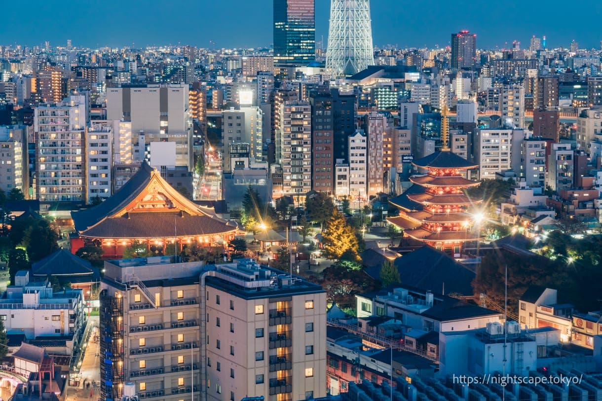- 推荐盖特雷门酒店和翼国际精选浅草驹形酒店。两家设施都可以以合理价格入住,从屋顶的展望层可以欣赏到水平很高的夜景。