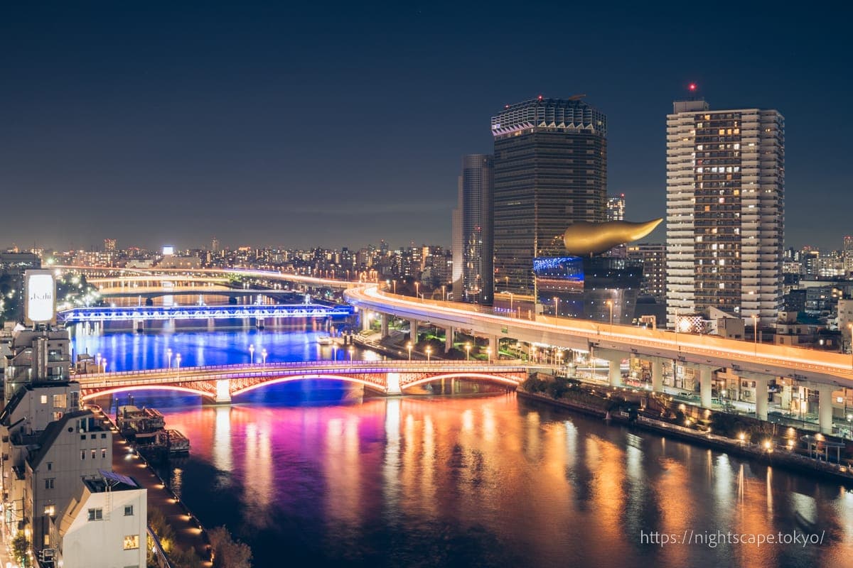 位于JR两国站、江户东京博物馆、两国国技馆附近的地上31层APA酒店两国站塔楼。从隅田川方向的客房可以看到灯光装饰的藏前桥、厩桥、东京晴空塔等浅草特色景观。31层的天空泳池露台还可以欣赏千代田区方向震撼的都市夜景。