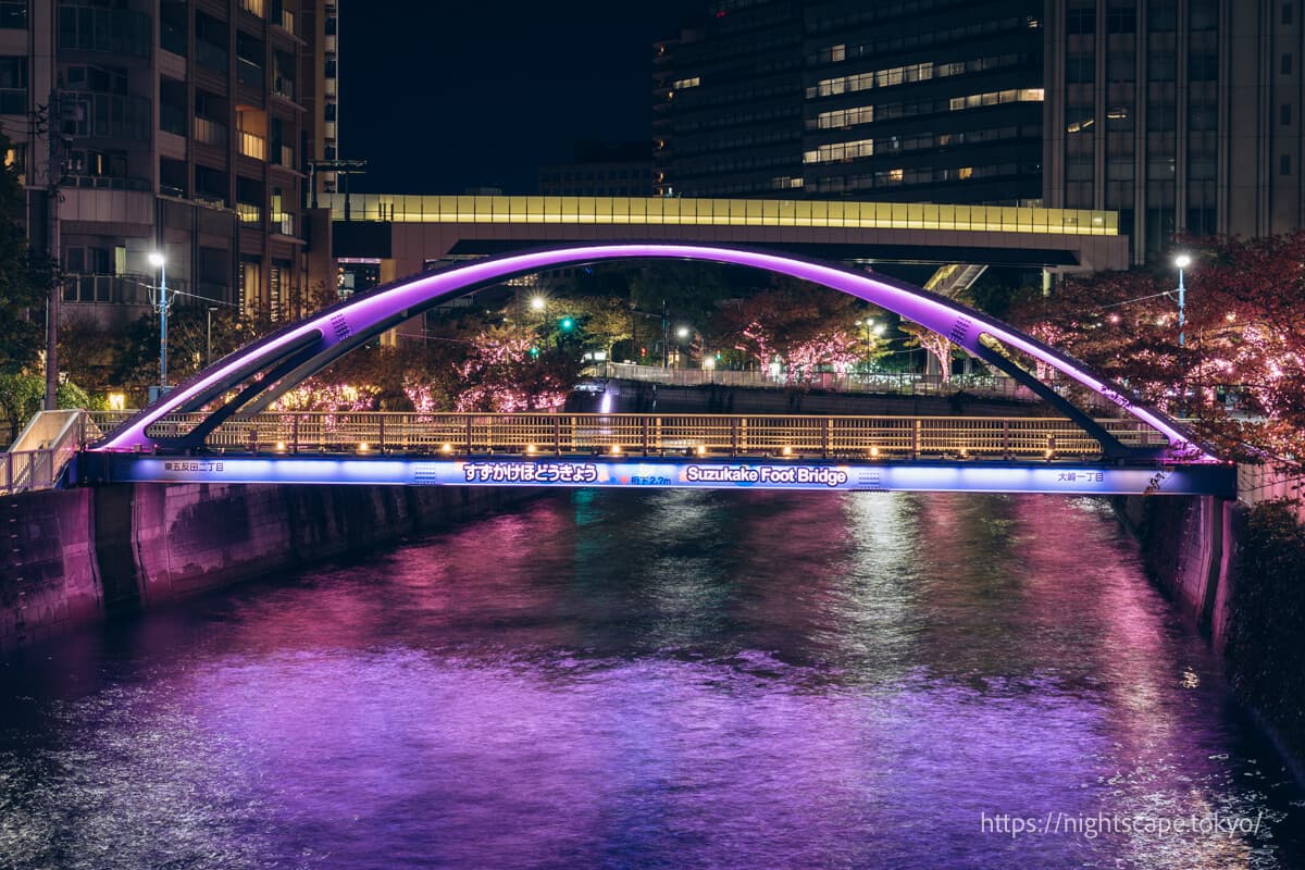 目黑川两侧的樱花林荫道被约39万颗LED灯染成粉色的景象,就像看到春天来临一般非常美丽。