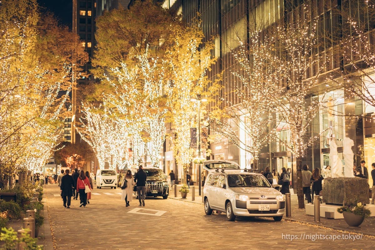 约1.2公里长的丸之内中通大街被优雅的香槟金色灯光鲜艳点亮的丸之内彩灯。自1999年首次举办以来,已持续20多年,是东京冬季的风物诗。