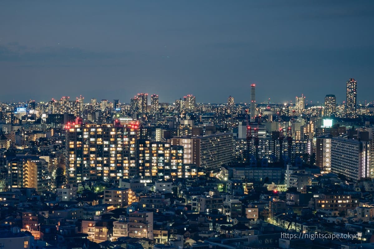 第一个看点是东南侧的眺望。可以欣赏到亮灯的东京铁塔和高层建筑群眩目灯光印象深刻的夜景。可以说是以恰到好处距离感眺望东京铁塔的最佳观景台。