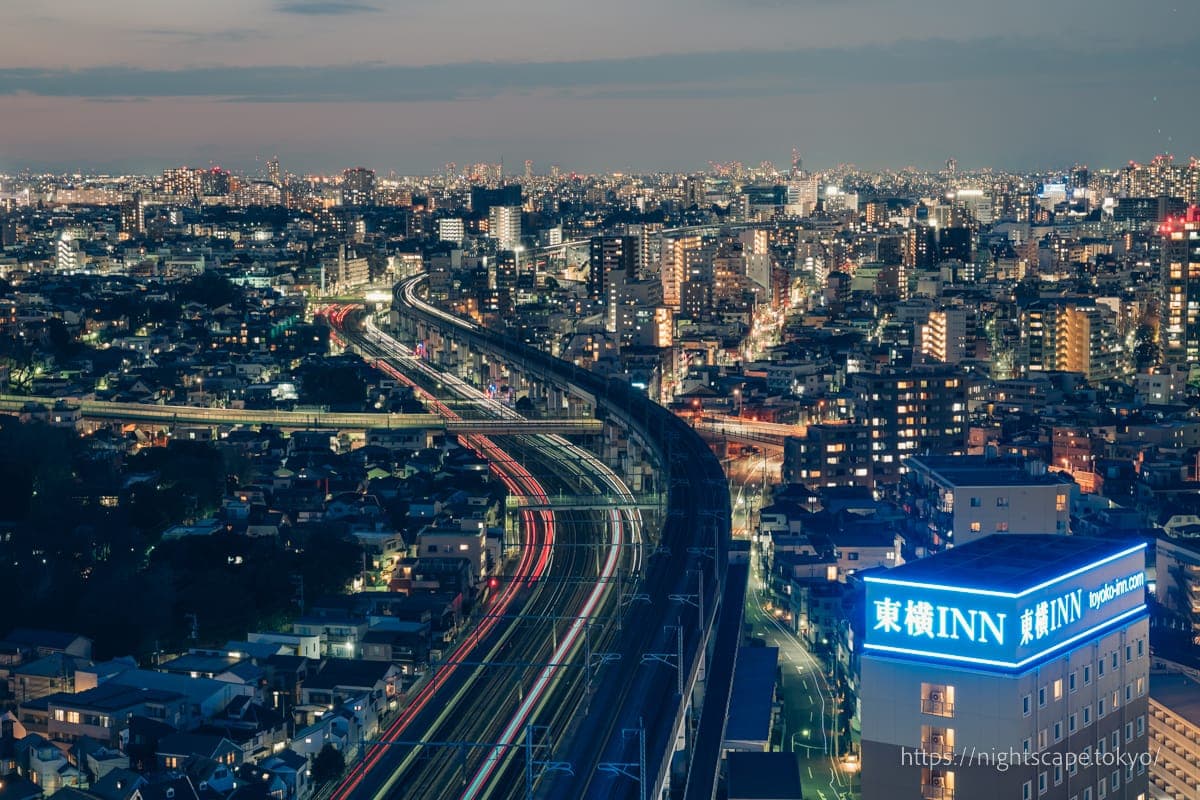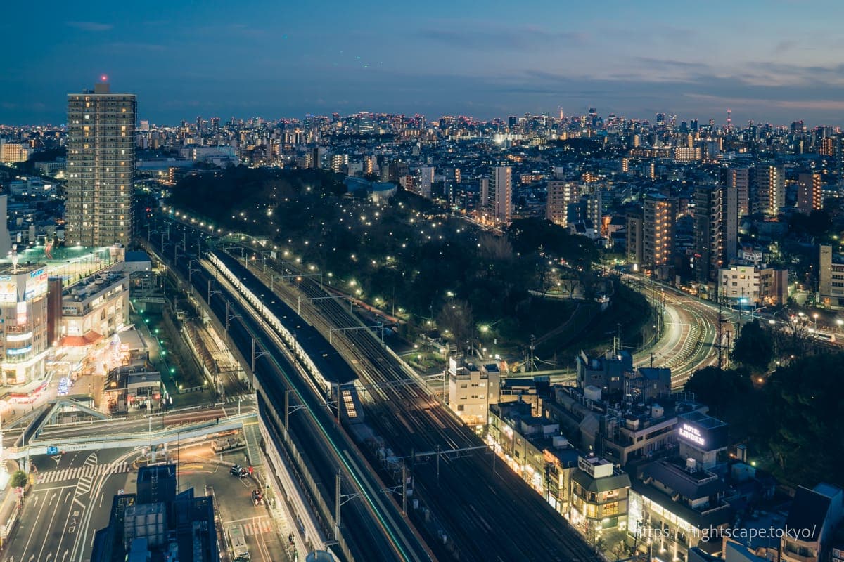 可以俯瞰西武线和JR山手线电车往来的免费夜景观赏点。推荐给喜欢观赏电车景色的朋友。