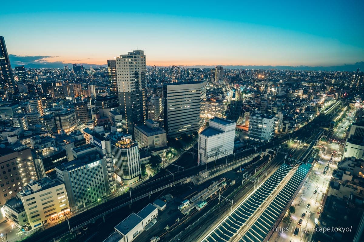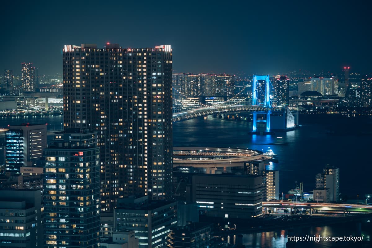 值得关注的是展开海湾地区眺望的东北景色。亮灯的彩虹大桥和芝浦地区高层建筑群交织的夜景值得一看。眼下看到的列车观景也是看点。