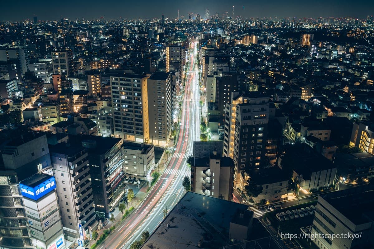 第一个看点是西南侧的景色。都道301号汇入国道1号的样子描绘出如铁塔般的形状,因此被称为"另一座东京铁塔",成为社交媒体上的热门观景点。