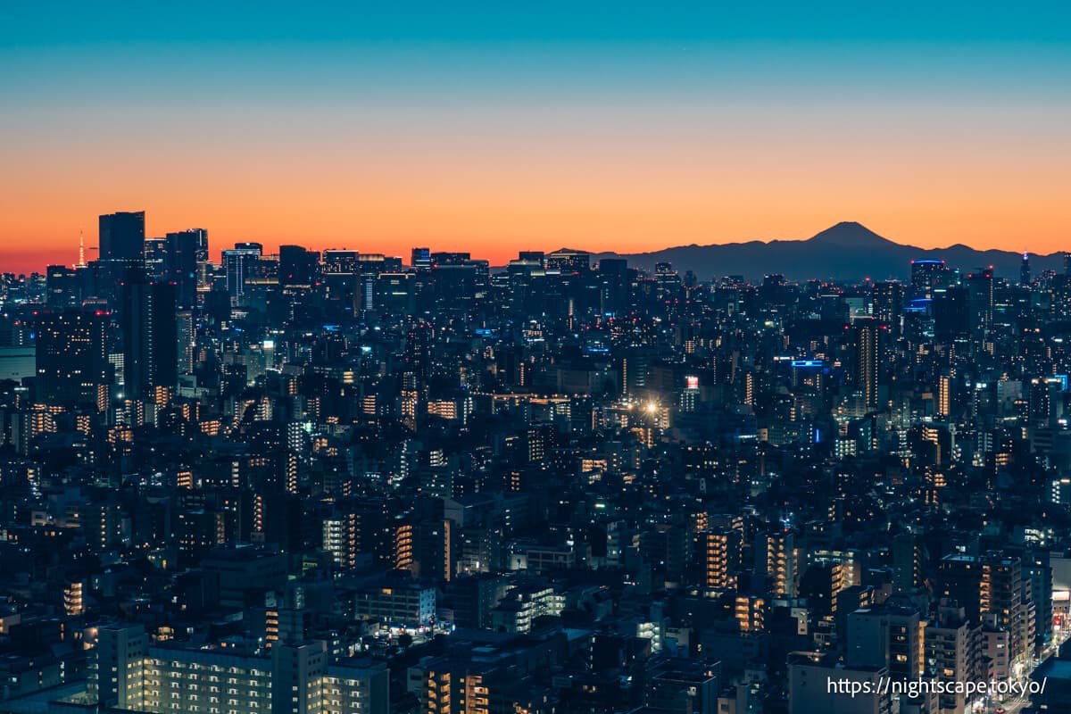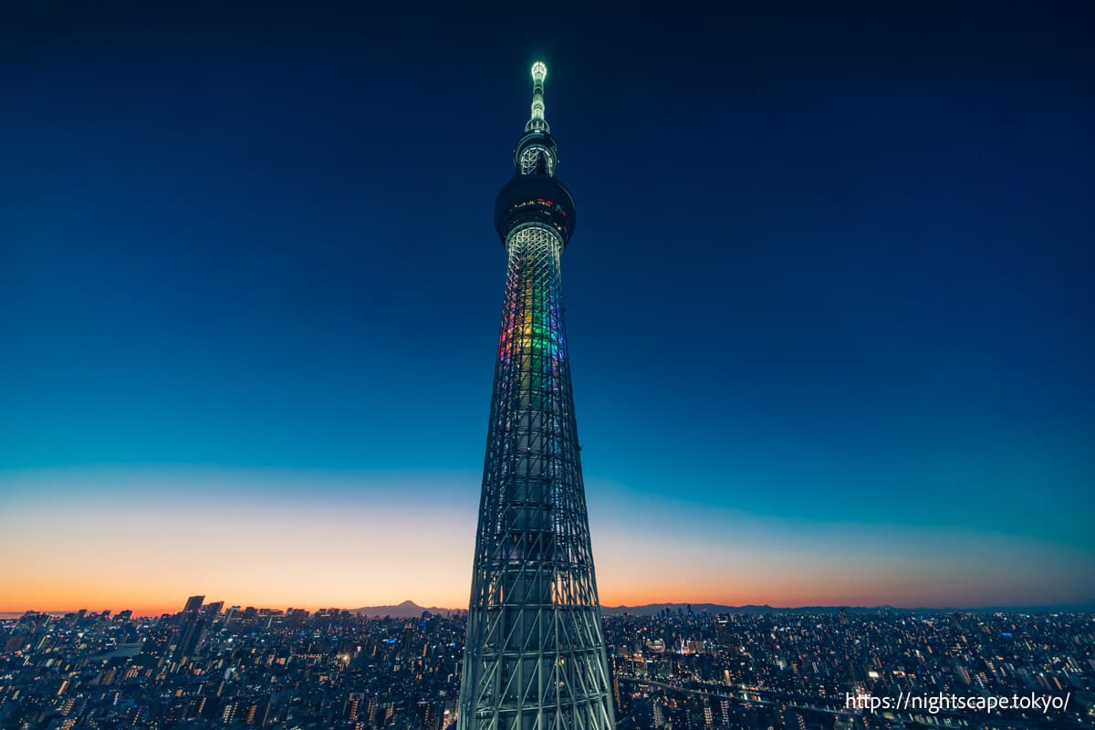 最大的看点当然是可以眺望东京晴空塔与富士山合演的西侧景色。以茜色天空为背景日本代表性地标合演的绝景值得一看。