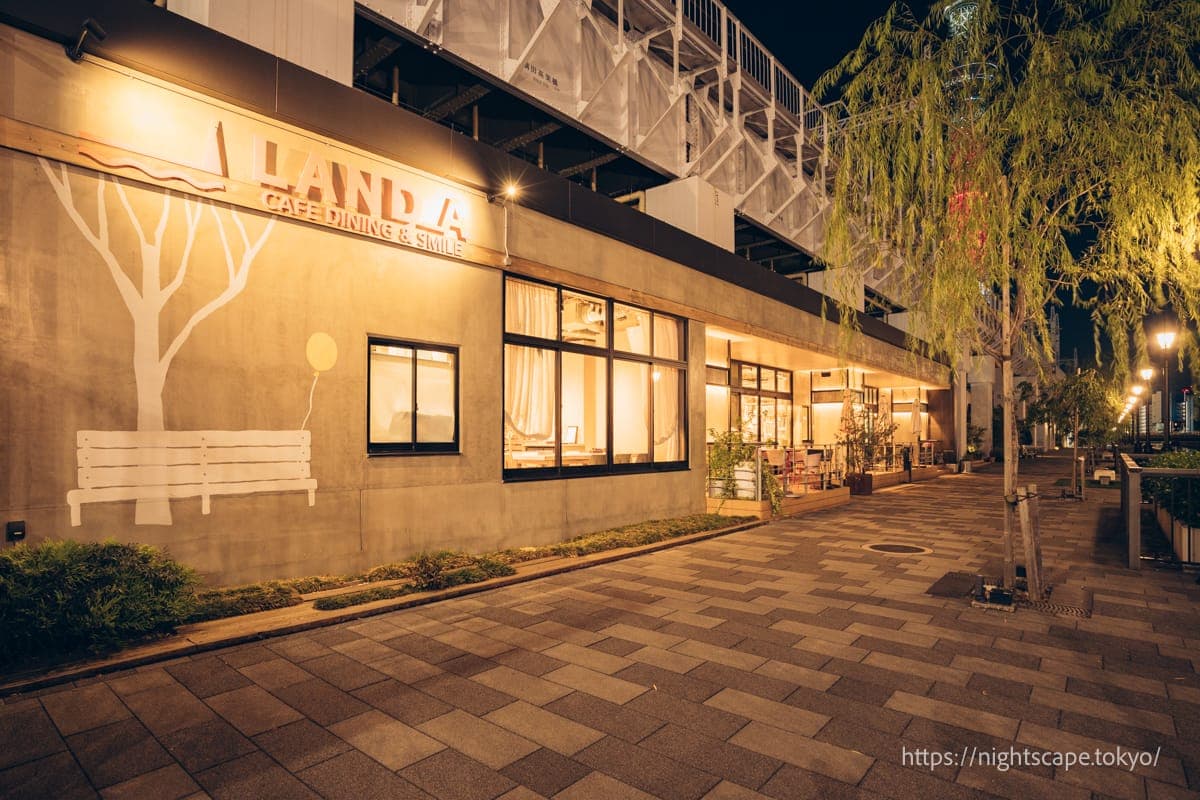 从园内可以眺望亮灯的永代桥和中央大桥、东京晴空塔等。