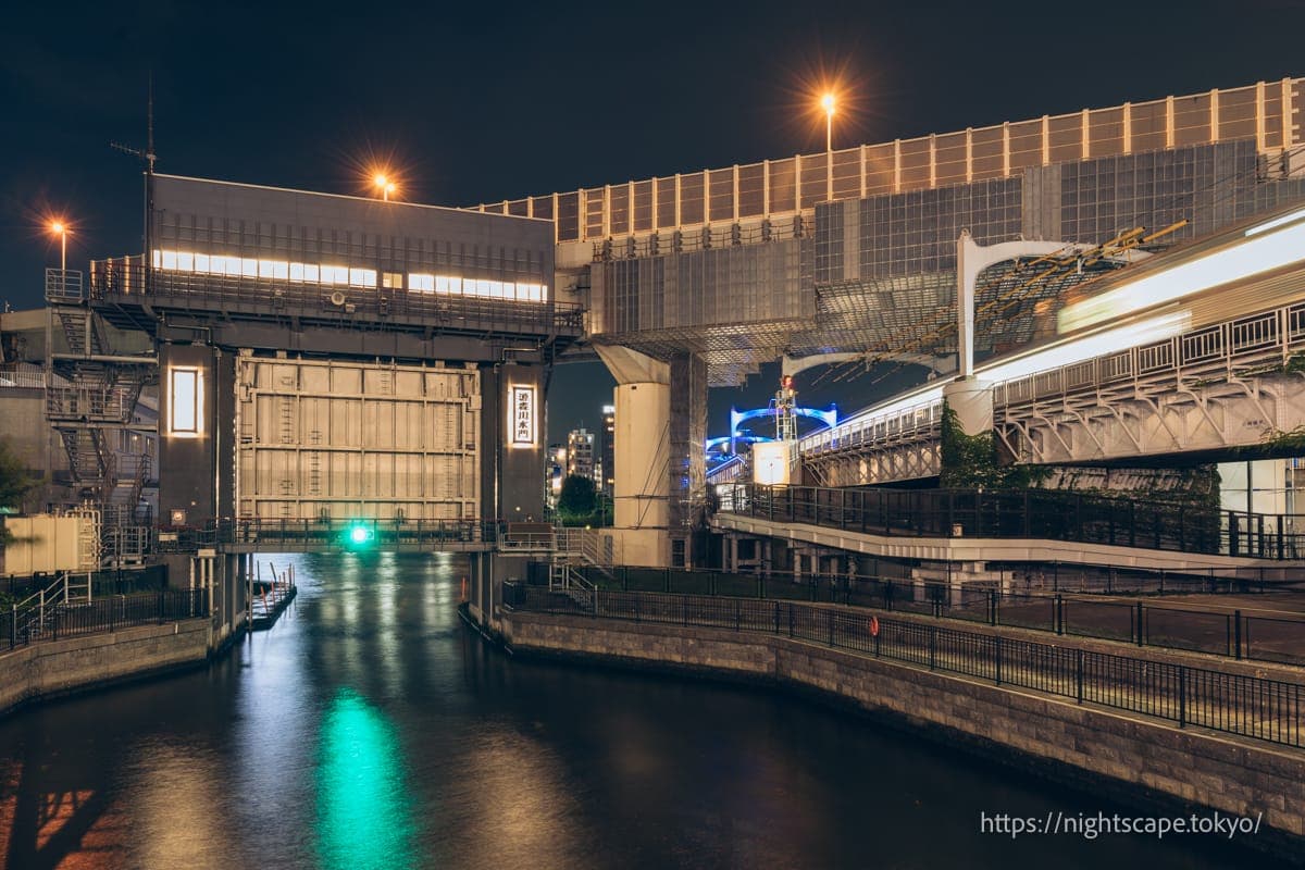 因为在首都高高架下方有点像屋顶,小雨时也能享受夜景摄影,这点很令人高兴。