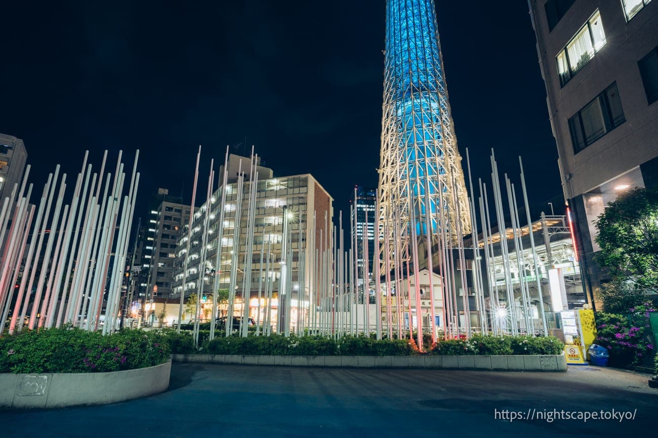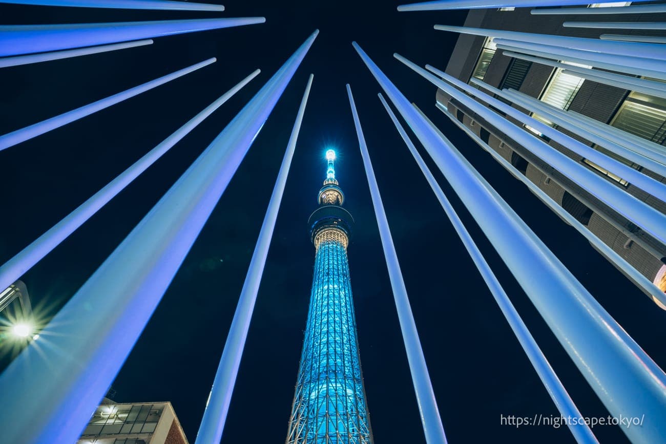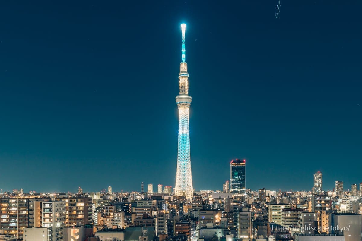 东京晴空塔竣工后开始实施灯光秀,夜晚造访可以看到非常美丽的景象。