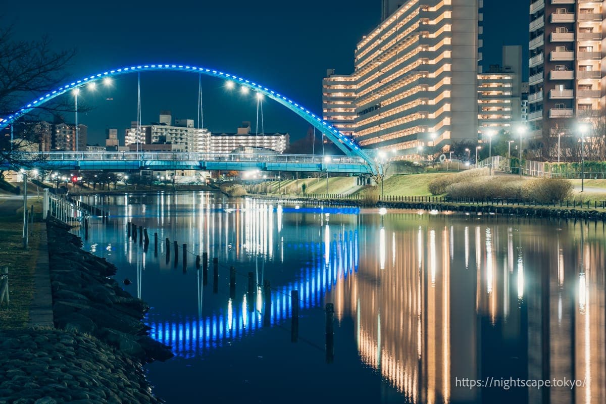 友爱桥的灯光颜色是蓝色,建议在东京晴空塔为「粋」(蓝色)时配合造访。