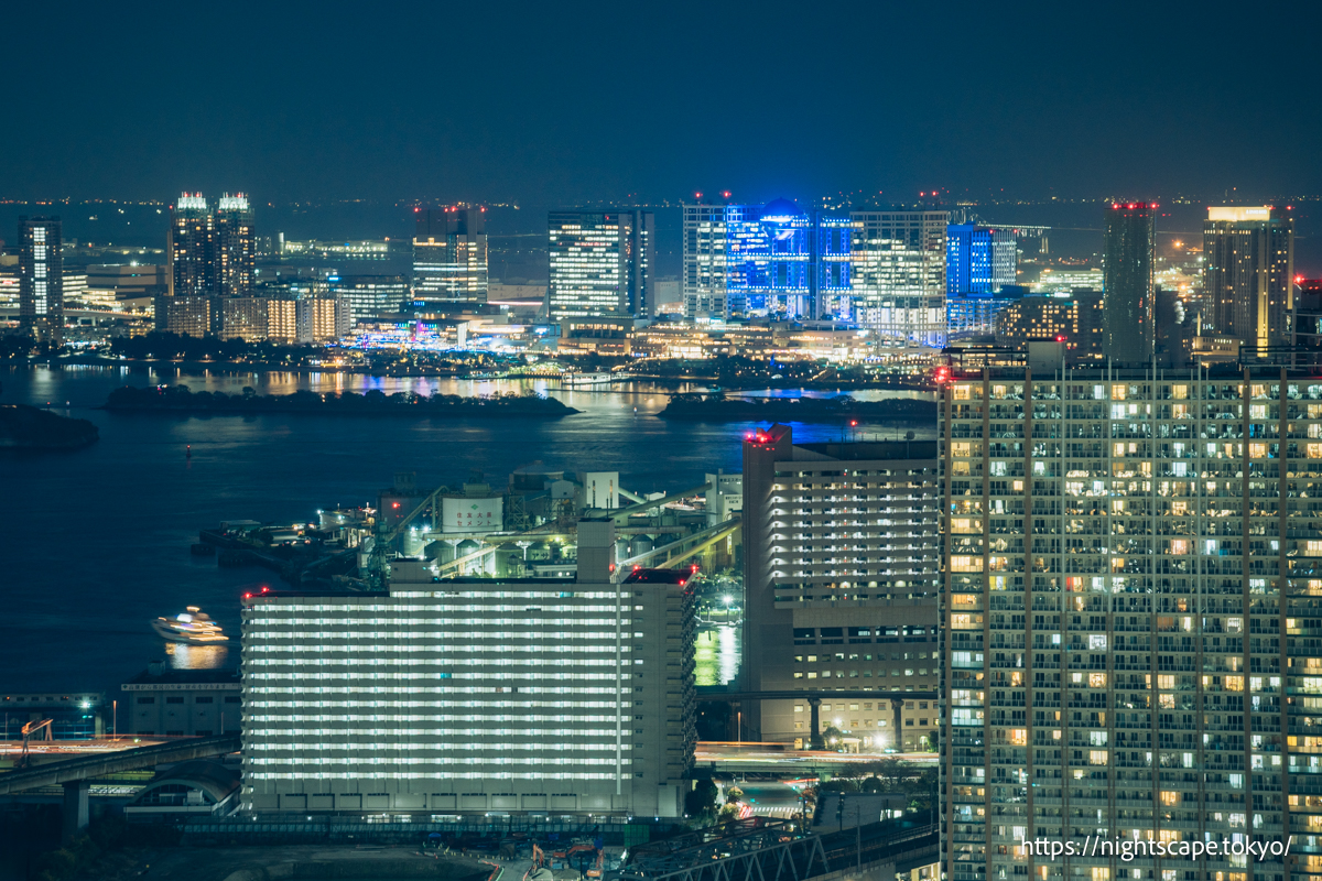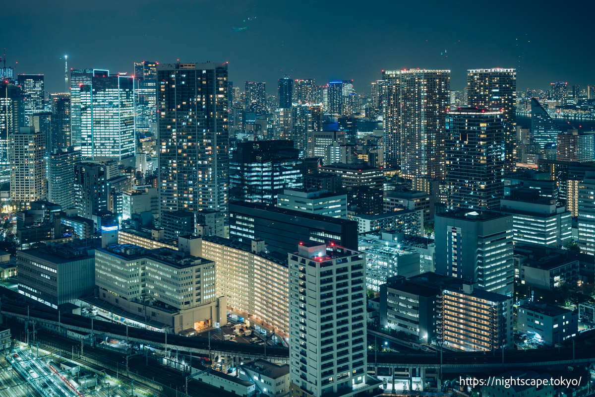 - レインボーブリッジ、品川駅のトレインビュー、お台場方面のビル夜景、スカイツリー
